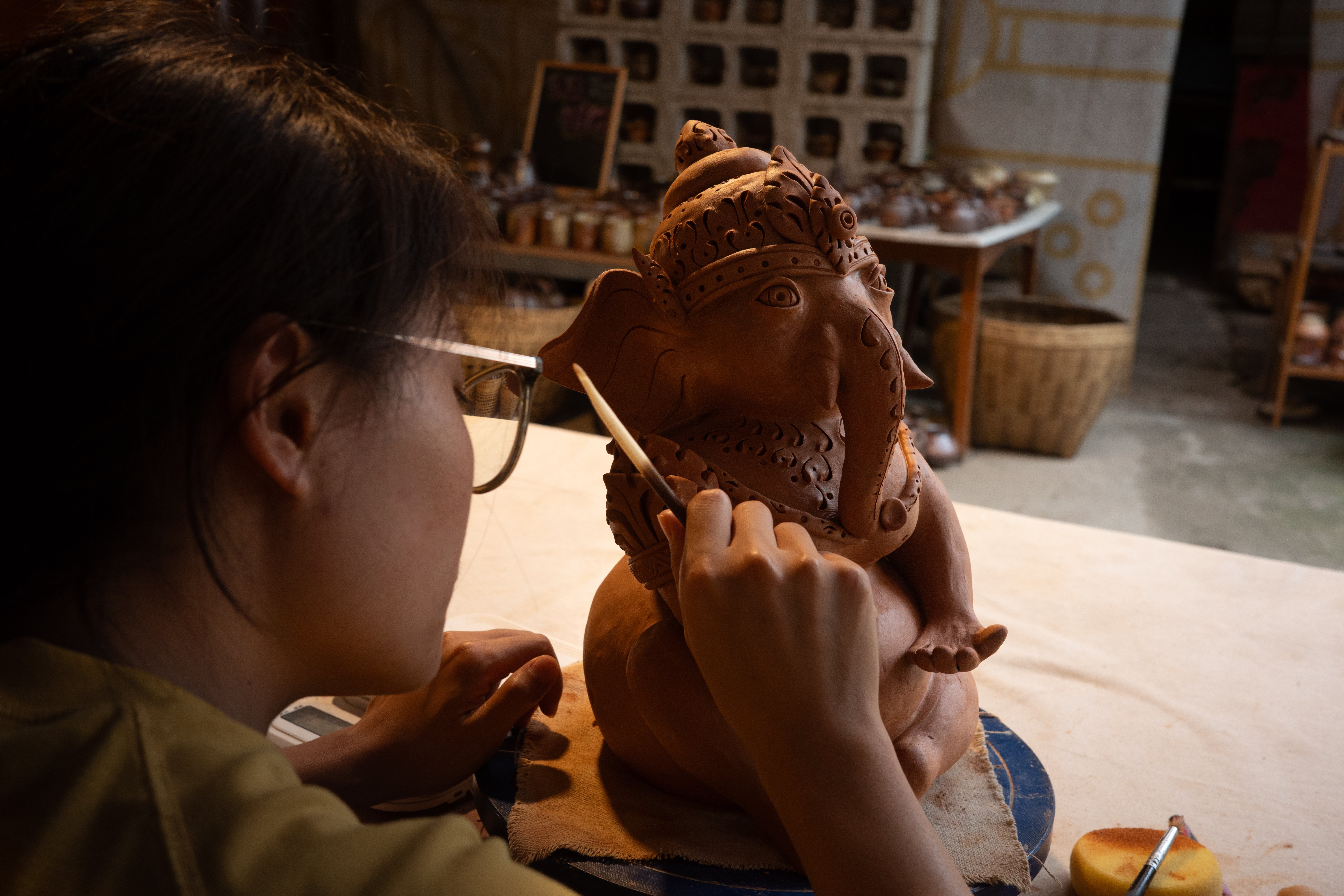 Using clay dug from the mountains of Yunnan, her works follow over ten traditional steps, from natural fermentation to shaping by hand, and finally, a seven-day wood firing without glazes or additives.