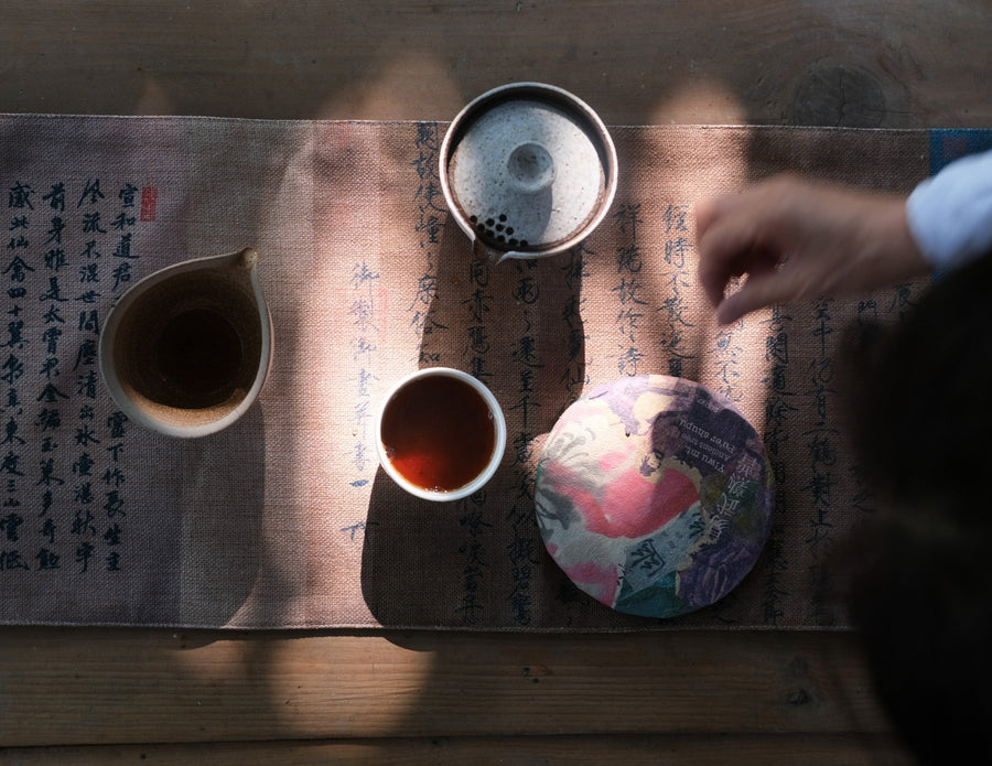 The softness and sweetness of Yiwu terroir have given the teas of this area of Yunnan, for centuries a fundamental stop on the Tea Route and the main source of the imperial tea tribute, the title of Queen of Pu'er. In this pu'er shu, made in the spring of 2023 and left to age in its forest of centuries-old trees until the leaves were pressed in 2024, all the complexity of the historical terroir from which it originates is expressed: notes of undergrowth mix with the gentle softness of jujubes, goji berries, steamed rice, and chestnut honey, which envelops and warms the body.